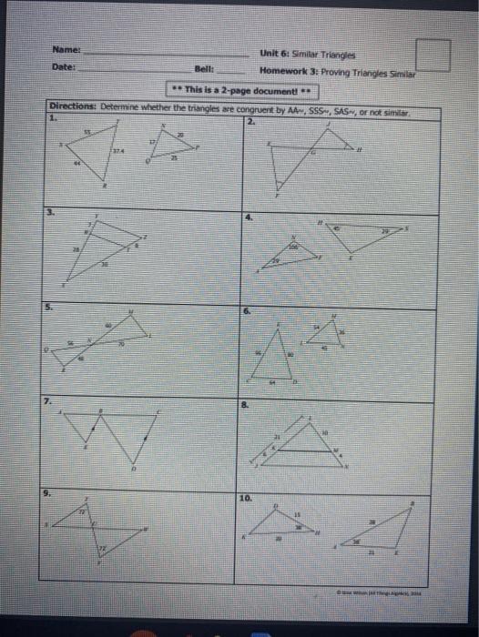 Geometry Proving Triangles Similar Worksheet Answer Key / Proving Triangles Congruent Geometry -